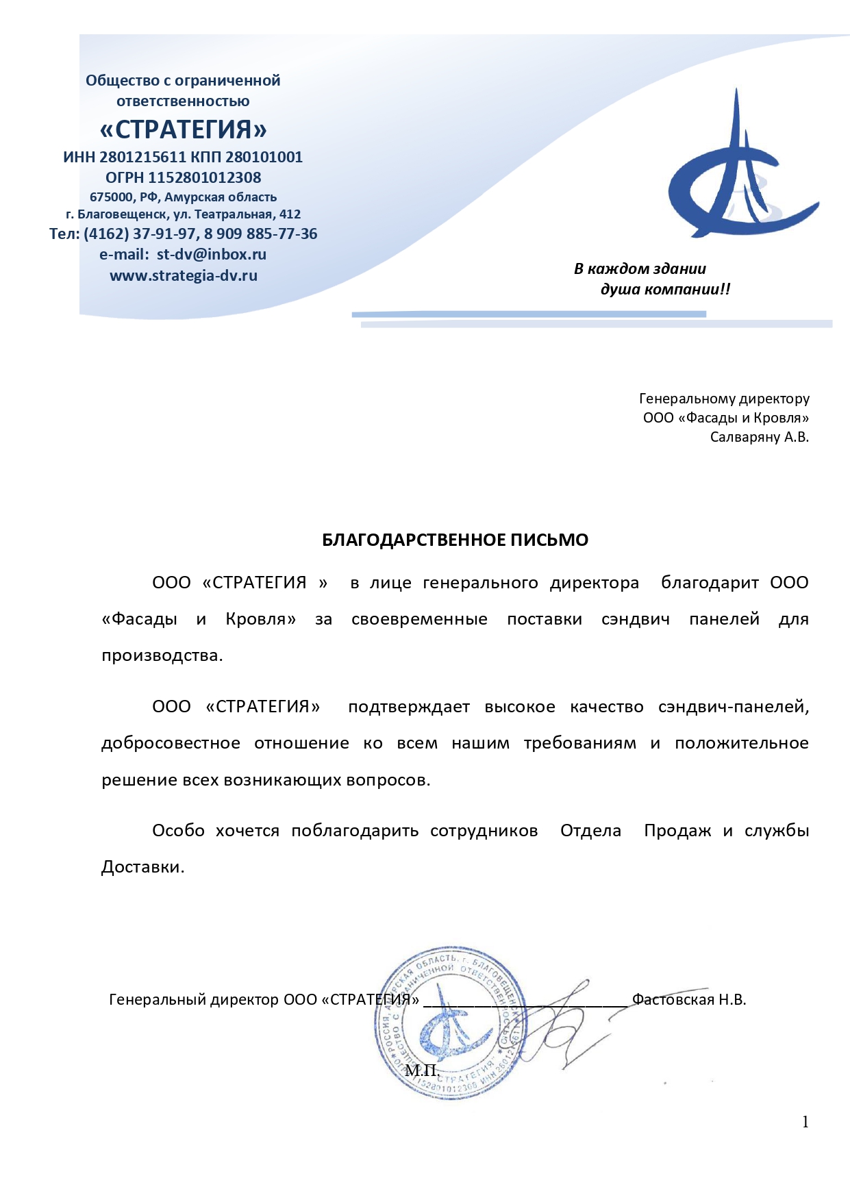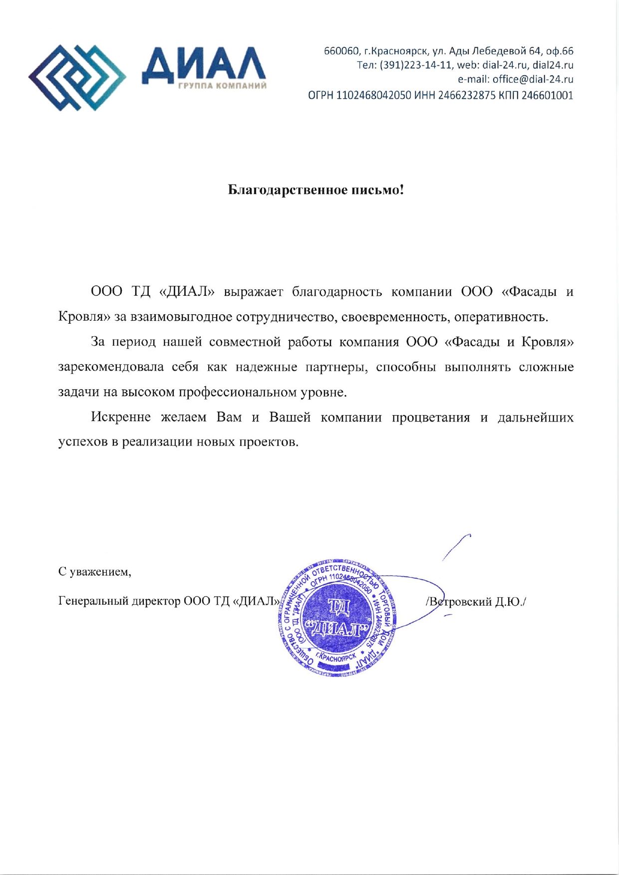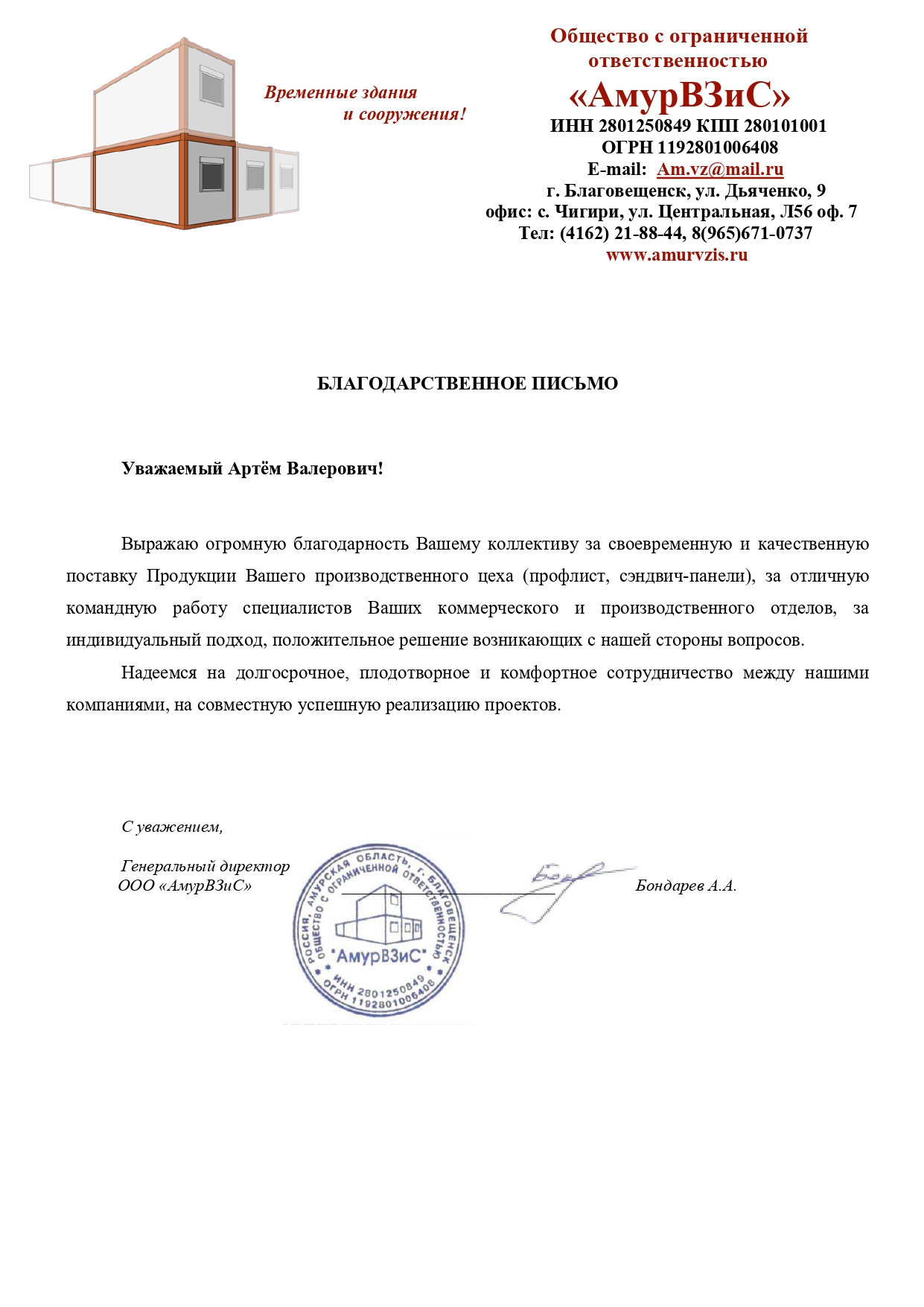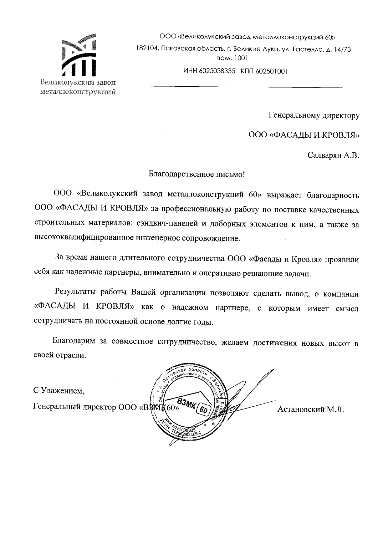 Благодарственные письма