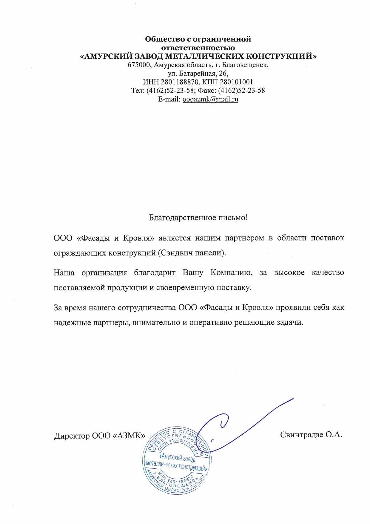 Благодарственные письма